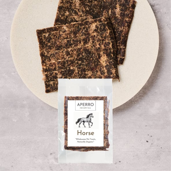馬の赤身のみでお作りし、手でパキパキと割れるおせんべいタイプでパピーからシニアまでどんな子にも食べやすく仕上げました。