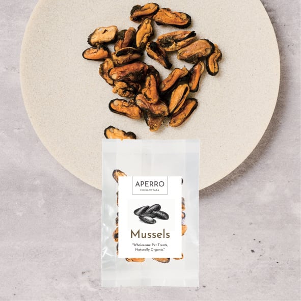 ▲ムール貝にはオメガ3脂肪酸やグルコサミンが豊富に含まれ、関節の健康をサポートします。また、豊富なミネラルが愛犬の免疫力を高める手助けをします。普段の食事に一粒程度加えてあげるのがおすすめです。